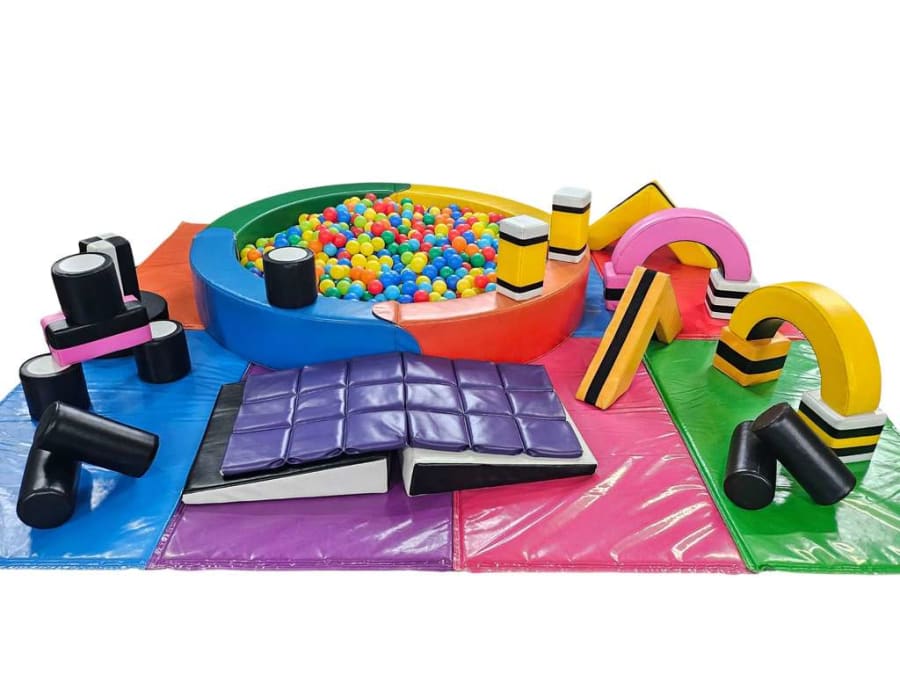 Stack the cubes high, roll the cylinders far and learn about the other exciting shapes! Crawling and rolling through the tunnels will delight the little ones and encourage active play alone or with friends! The ball pit is a great way to rouse your child's senses while they have oh so much fun! Let's not forget the rockers - a brilliant activity to build up core strength and coordination!