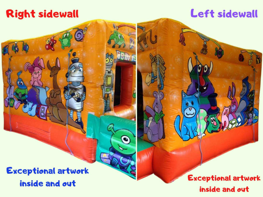 This unique unit is covered in vibrant, high-quality artwork of characters, animals and toys that children under 5 will look at in awe. A little rain or bright sun won't cause any harm, as the inflatable comes with a sewn-in rain cover so the playtime can continue!