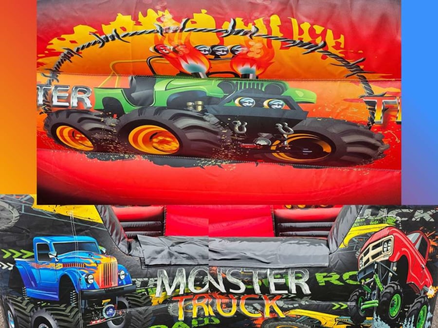 Whether you are planning an event under the sun or inside a local venue, this unit is versatile enough for both indoor and outdoor setups. The eye-catching monster truck branding, featuring powerful off-roaders and racing cones, makes it a great centrepiece for any vehicle-themed celebration.