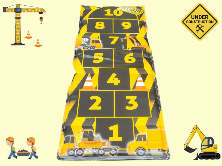 Add this playground game to your event today; it's the perfect match for the construction-themed soft play and ball pool! Forget the chalk, that's old-school; this vibrant print is very cool!